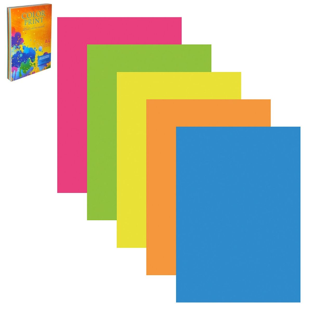 Бумага офисная для принтера цветная А4 Color Print 75г 250 л. 5 неон цветов /10