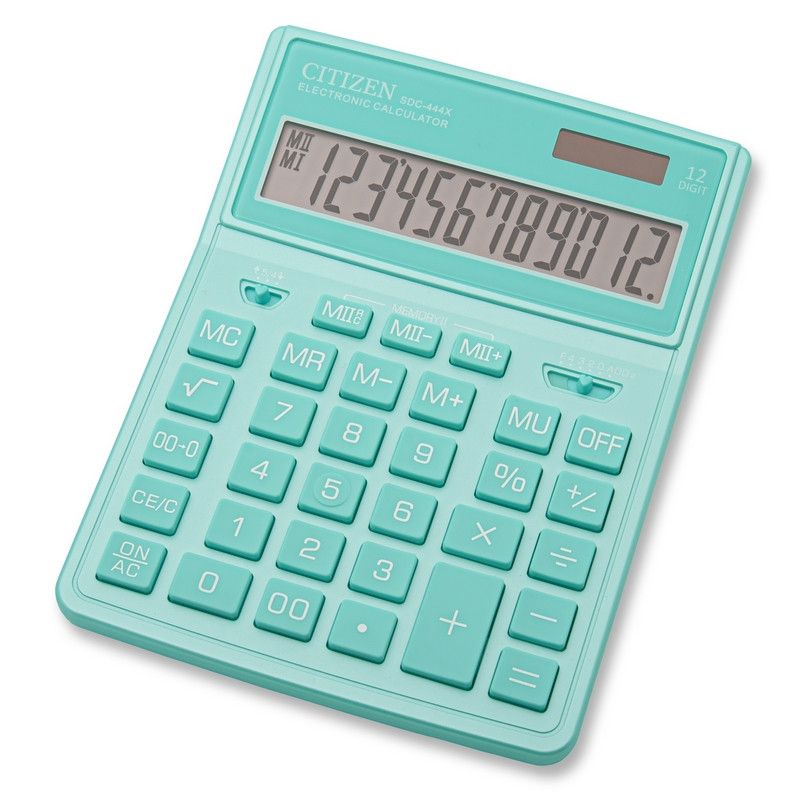Калькулятор CITIZEN SDC-444X-GNE 12 разрядный бирюз. (204*155мм) 1235549 батарея/фотоэлемент/20