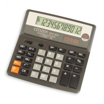 Калькулятор Citizen SDC-620 II в пластиковом корпусе с 12-разрядным ЖК-дисплеем. 156*159*31 Имеет оптимальный набор вычислительных функций: основные математические операции, расчет процентов, извлечение квадратного корня, корректировка вводимого числа, двойная память для одновременного хранения двух различных значений, функция MU для вычисления надбавки к цене-прибыли. Удобная клавиатура снабжена кнопкой ввода двойного нуля. Питание калькулятора автоматически отключается после пяти минут бездействия.