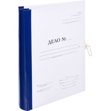 Архивная папка на завязках Дело № выполнена из плотного картона, покрытого офсетной бумагой. Корешок шириной 8 см изготовлен из бумвинила (слой ПВХ на бумажной основе). Количество завязок - две. Внутренние гребешки с 8 отверстиями позволяют подшивать документы с помощью тесьмы или механизма-скоросшивателя. Папка на завязках вмещает до 500 листов стандартной плотности. Внешний размер - 228x70x310 мм. Внутренний размер - 224x68x310 мм.