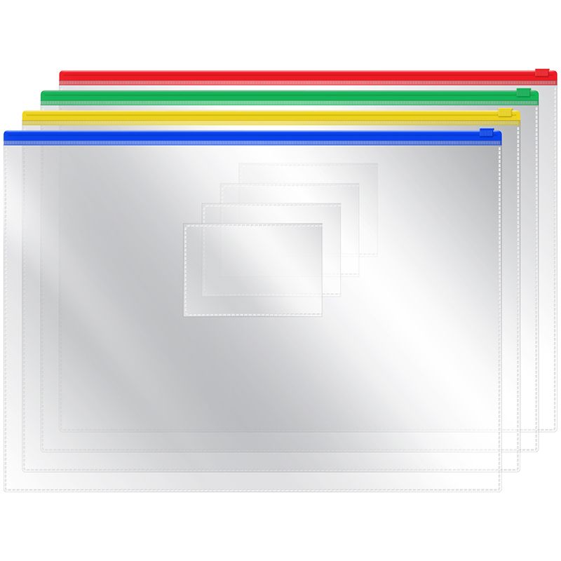 Папка-конверт размером (формат А5) изготовлена из мягкого прозрачного ПВХ. Закрывается на пластиковую молнию цвета ассорти.