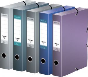 Папка- короб пластиковая, на резинке. Ширина корешка - 100мм. На торце имееться пластиковый карман со сменной двусторонней этикеткой и кольцо для удобства захвата. Цвета: розовый, голубой, зеленый, серый, серебрянный.