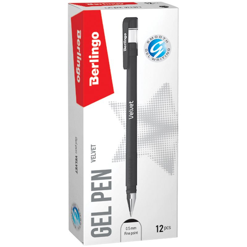 Ручка гелевая Berlingo Velvet с колпачком и клипом станет стильным канцелярским аксессуаром и надежным помощником для работы или учебы. Цвет чернил – чёрный. Диаметр пишущего узла составляет 0,5 мм, благодаря чему получается тонкая, аккуратная линия. Толщина линии письма 0,4 мм, а длина линии письма – 400 м. Благодаря технологии soft-touch приятное на ощупь бархатистое покрытие корпуса создает дополнительный комфорт при письме. Цвет корпуса соответствует цвету чернил. Эргономичная трёхгранная зона захвата обеспечивает удобство при использовании ручки. Рифление в зоне захвата препятствует скольжению пальцев.