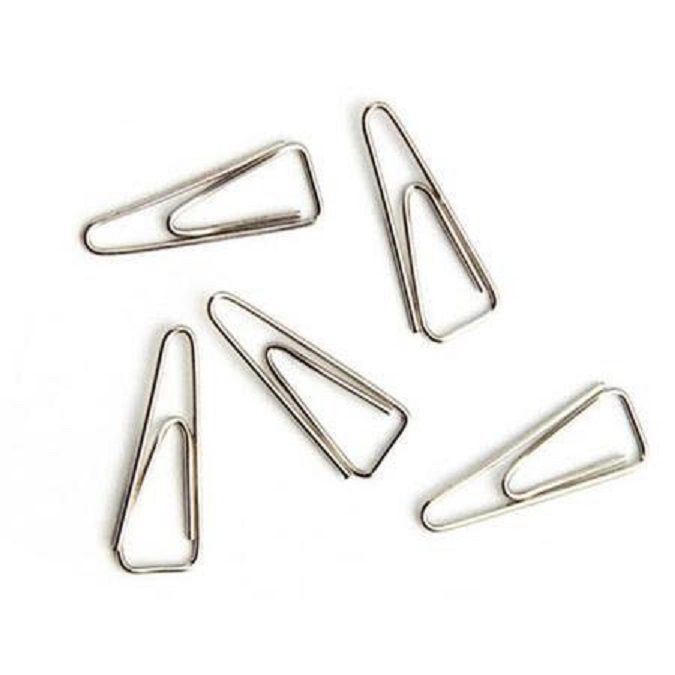 Металлические никелированные скрепки треугольной формы. Размер - 25 мм. В картонной упаковке - 100 шт.